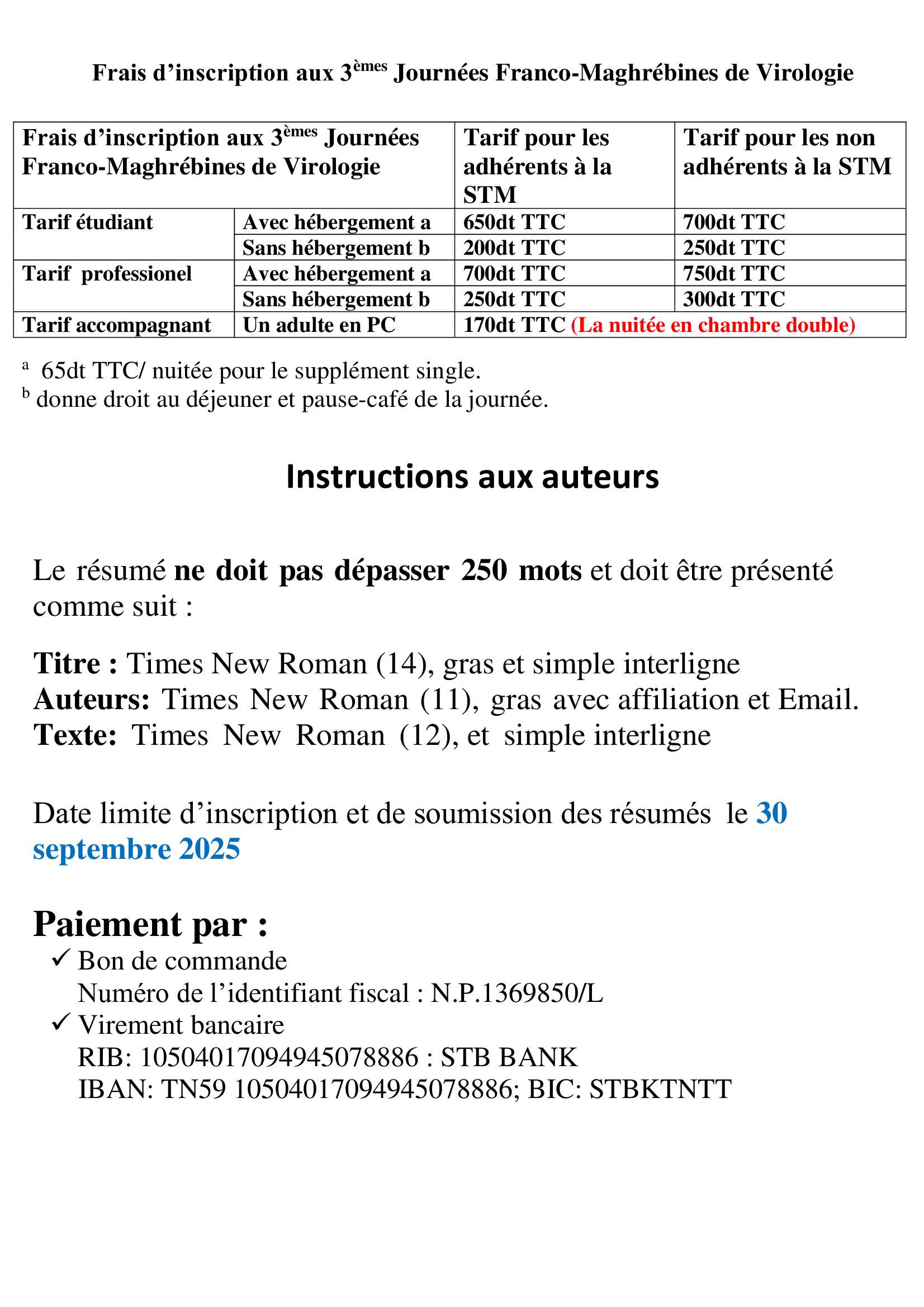Les 3èmes Journées Franco-Maghrébines de Virologie: INSTRUCTIONS AUX AUTEURS